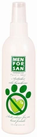 El antiolor celo hembra es un producto natural que previene del acoso de machos no deseados durante el paseo diario cuando nuestra hembra esta en el periodo de celo o calor. Aplicaremos el producto en la parte posterior de nuestra perrita, antes de cada paseo levantando ligeramente la cola para nebulizar el producto en la zona trasera. Este producto no provoca ninguna irritación pues tiene pH neutro no contiene alcohol y los enmascadores del olor que contiene son totalmente naturales.
