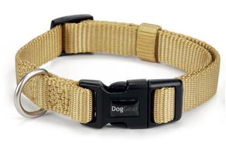El collar hecho de nylon es de excelente calidad y es ajustable a cualquier tamaño de su perro. Está disponible en distintos tamaños y cinco bonitos colores: rosa, amarillo, azul, verde y marrón. Es muy fácil de poner y quitar gracias a su cierre de click de plástico resistente. Hay arneses y correas de nylon que hacen juego con estos collares.
