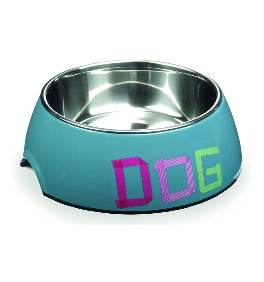 El comedero de melamina Dog azul redondo es de alta calidad, muy resistente, fácil de limpiar y no es tóxico. Puede ser utilizado tanto para la comida como para el agua. El recipiente tiene un diseño moderno y creativo con la palabra "DOG" en fondo azul. El plato es de acero inoxidable es extraíble.^^