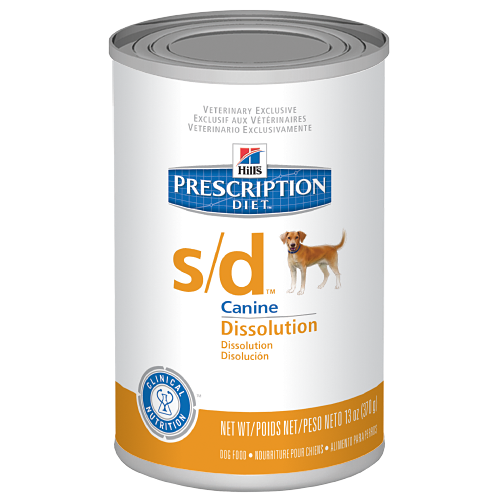 Para el tratamiento nutricional de los perros con enfermedad del tracto urinario. La enfermedad del tracto urinario en los perros con frecuencia es causada por la formación de cristales y piedras de base mineral en el tracto urinario que pueden causar molestias, sangre en la orina e incluso una obstrucción que puede ser peligrosa para la vida. En los perros, los cristales de estruvita están generalmente causados por la enfermedad del tracto urinario.Hill's Prescription Diet* s/d* ha sido formulado por veterinarios para ayudar a eliminar los cristales y las piedras de estruvita en su perro. Las formas de estruvita son resultado de la orina que está saturada con proteínas, calcio, fósforo y magnesio combinado con un pH urinario inadecuado.^^Este pienso no está indicado para:^- gatos^- cachorros^- hembras en periodo de reproducción^- primeras 2 semanas tras una cirugía^- insuficiencia cardiaca congestiva e hipertension^- administración simultanea de acidificantes urinarios^- mantenimiento pronlongado sin motorizar los niveles plasmáticos de proteinas y equilibrio acido-base^- cristaluria o cálculos no estruvíticos^- enfermedad renal^enfermedades hepáticas