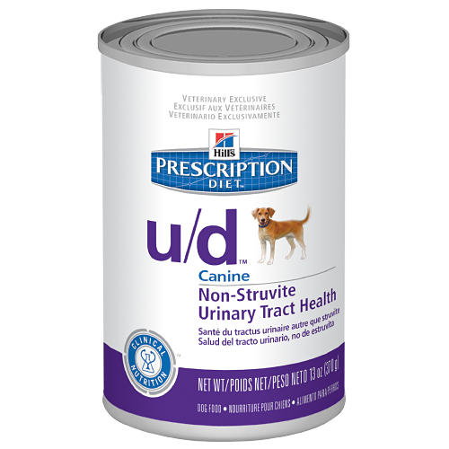 Producto específico para alimentación de perros con cristales de urato o cistina, insuficiencia renal avanzada o enfermedades hepáticas causadas por acúmulos de cobre.^^Indicaciones:^^ Disolución de los cálculos de urato y cistina.^ Reducción de la formación de cálculos de urato, oxalato y cistina.^ Insuficiencia renal avanzada.^ Enfermedad hepática por acumulación de cobre.^^No recomendado para:^^ Gatos.^ Cachorros.^ Hembras en gestación o lactación.^ Perros con cálculos de estruvita.^ Perros con hipoalbuminemia, hiperlipidemia o pancreatitis, con un historial de, o con riesgo de sufrir, pancreatitis.^ Primeras 1 ó 2 semanas tras una cirugía.^^Para el manejo nutricional de perros con enfermedad renal avanzada. La enfermedad renal avanzada se caracteriza por unos síntomas graves y peligrosos para la vida del perro. Esta enfermedad, también llamada fallo renal, se considera irreversible pero puede ser tratada con los cuidados apropiados y el alimento adecuado. Prescription Diet Canine u/d fue desarrollado para ayudar en el tratamiento de perros con los problemas asociados a la enfermedad renal avanzada. Las enfermedades renales hacen que los riñones sean menos eficientes en eliminar sustancias de deshecho del torrente sanguíneo y regular los fluidos corporales.
