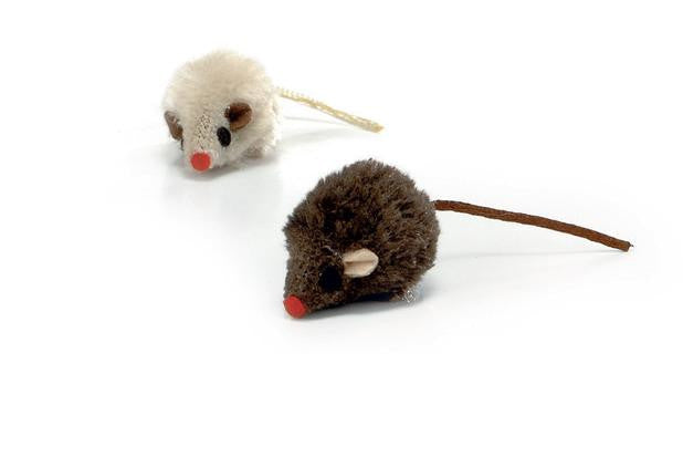 Mini ratoncillos de peluche de 5 centímetros para gatos. Juguetes con pelo de tacto suave en beige o marrón. A los gatos les encanta jugar con ellos por su textura. Sacarán su instito animal para cazarlos.