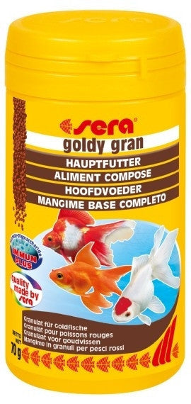 SERA goldy color spirulina es un alimento colorante nutritivo y fácil de digerir para todos los peces valiosos de agua fría. Satisface a la perfección las necesidades especiales de las formas híbridas exigentes de las carpas doradas. Su elevado contenido de espirulina favorece de forma idónea la formación de colores de estos atractivos peces. Variedades: 100 ml (30 g), 250 ml (70 g), 1000 ml (300 g), 3,8 kg. Ingredientes: Harina de pescado, fécula de maíz, harina de trigo, espirulina (10%), germen de trigo, levadura de cerveza, aceite de pescado, gammarus, gluten de trigo, harina de krill, mejillón de labio verde (Perna canaliculus) en polvo, ortiga, hierbas, alfalfa, algas marinas, pimentón, perejil, espinaca, zanahorias, ajo.