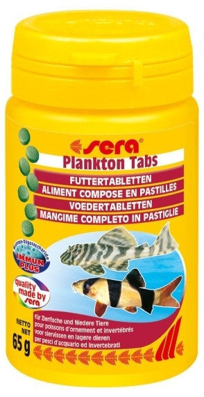 El alimento idóneo para los peces que se alimentan de plancton y para los invertebrados del acuario de agua salada. Contiene un alto contenido de espirulina y plancton natural cuidadosamente elaborado. Los SERA Plankton Tabs son golosinas ricas en proteínas para los siluros y las lochas en el acuario de agua dulce. Variedades: 50 ml (33 g), 100 ml (65 g). Ingredientes: Espirulina, harina de pescado, krill, harina de trigo, levadura de cerveza, Ca-caseinato, leche en polvo, ortiga, gambas, gammarus, algas marinas, huevo entero en polvo, hierbas, alfalfa, aceite de hígado de bacalao, perejil, pimentón, espinaca, mejillón de labio verde (Perna canaliculus) en polvo, zanahorias, ajo.